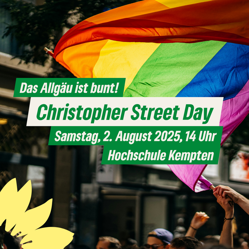 Der Verein Allgäu Pride feiert queeres Leben – und wir feiern mit! Wir fordern gleiche Rechte für alle Menschen und setzen ein Zeichen für Vielfalt, Liebe und Zusammenhalt. Ob laut oder leise, queer oder ally – kommt dazu und geht mit für eine offene, solidarische Gesellschaft.