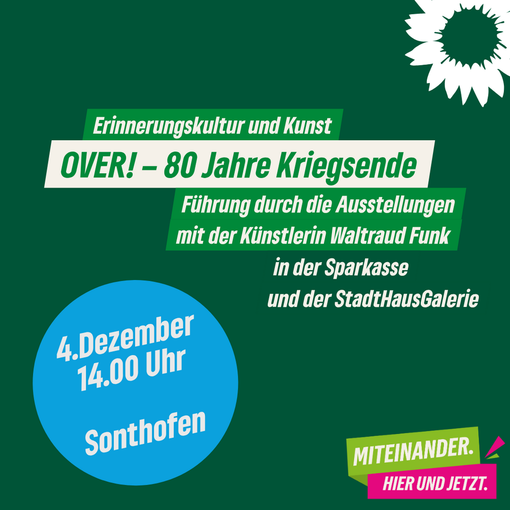Die Kosten für die Eintritte und die Führung übernimmt der Kreisverband Oberallgäu, um Spenden wird gebeten. Die Anzahl an Teilnehmenden ist begrenzt. Anmeldung ist möglich bis 2. Dezember an info@gruene-oa.de