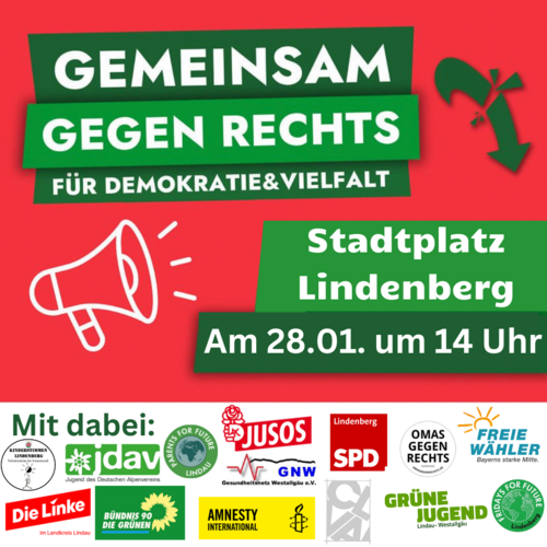 Demonstration in Lindenberg im Allgäu unter dem Motto "GEMEINSAM GEGEN RECHTS"