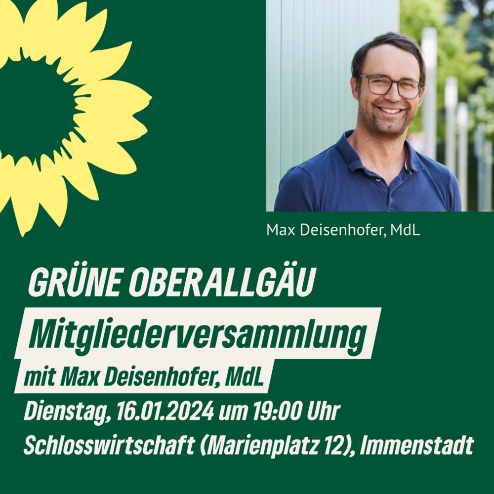 Unser Betreuungsabgeordneter im Landtag Max Deisenhofer wird ebenfalls kommen und sich vorstellen. Alle Mitglieder erhalten rechtzeitig eine offizielle Einladung.