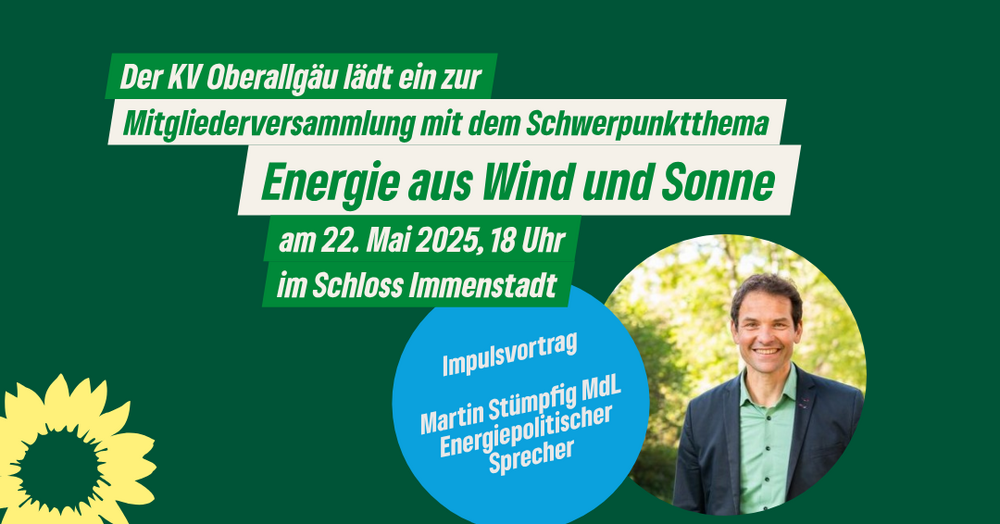 Den Impulsvortrag wird Martin Stümpfig halten. Er ist Mitglied der Grünen Landtagsfraktion und deren Sprecher für Energie und Klimaschutz. Im Anschluss ist Zeit für eine Diskussionsrunde.
