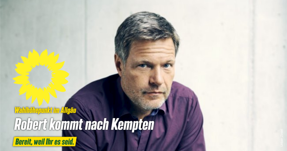Robert Habeck kommt nach Kempten! Der Bundesvorsitzende wird auf dem Hildegard-Platz eine flammende Wahlkampfrede halten! Alles ist drin!