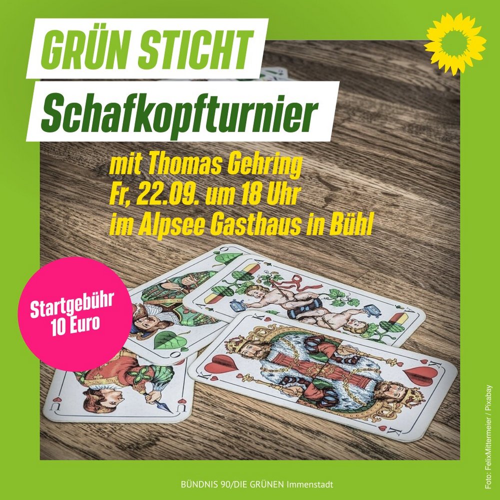 Der Grüne Ortsverband Immenstadt lädt herzlich zu seinem Schafkopfturnier "Grün sticht" ein