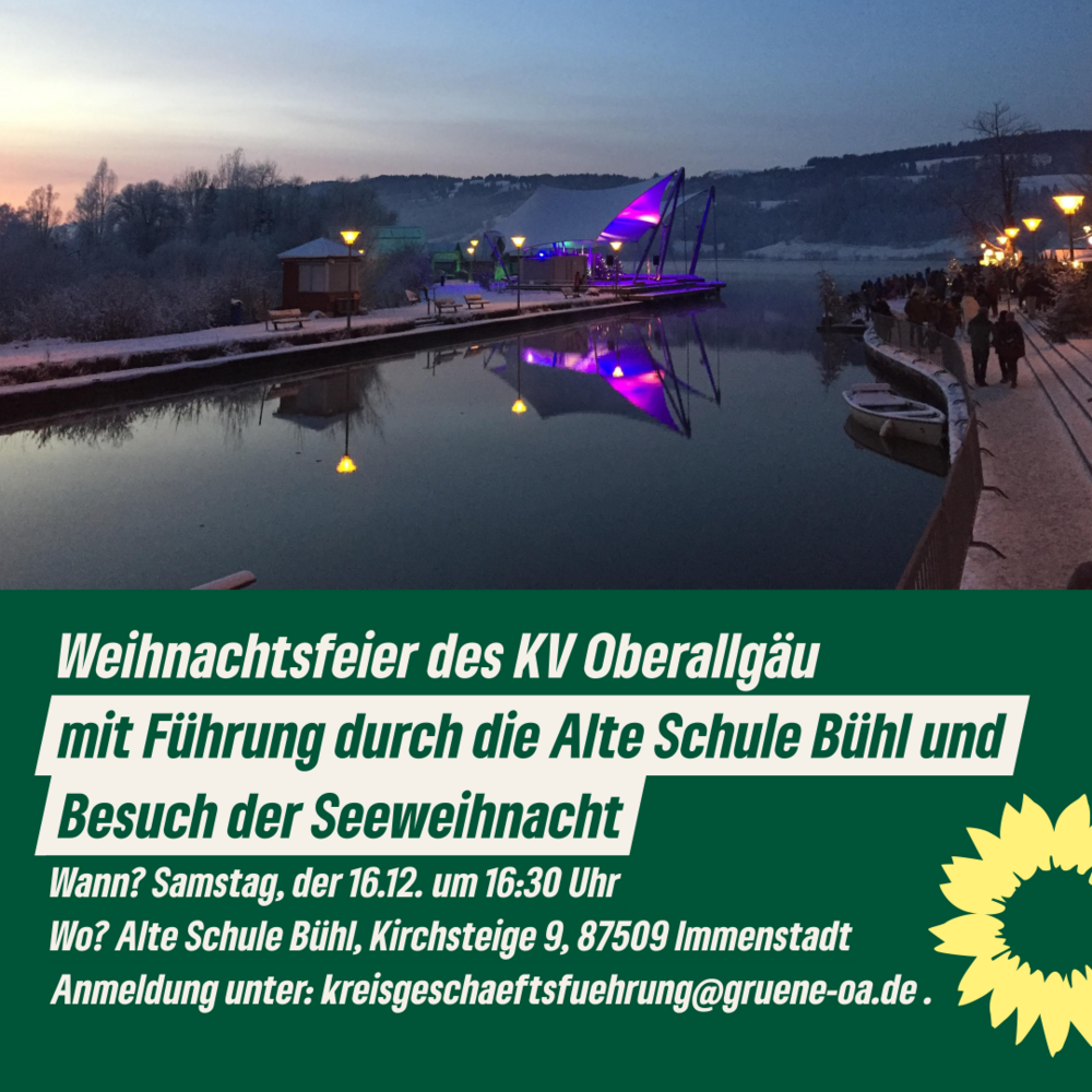 Danach gehen wir gemeinsam auf die Seeweihnacht in Bühl und lassen dort das Jahr ausklingen. Wenn ihr zur Führung und/oder unserem kleinen weihnachtlichen Beisammensein kommen möchtet, meldet euch unter kreisgeschaeftsfuehrung@gruene-oa.de an. Für die Führung bringt bitte eine Stirnlampen mit.