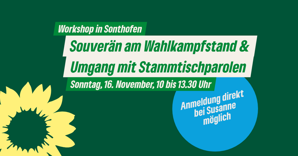Wir wollen vor Ort sichtbar sein und aktiv am Infostand und auch an der Haustür auf die Wählerinnen und Wähler zugehen. Wir wollen sie gut ansprechen, für die Grüne Sache begeistern und zur Wahl mobilisieren. In diesem Workshop zeigt uns Birgit Zipfel von der Landesgeschäftsstelle, wie uns das erfolgreich und stressfrei gelingt, was es zu beachten gibt oder unbedingt zu vermeiden gilt.