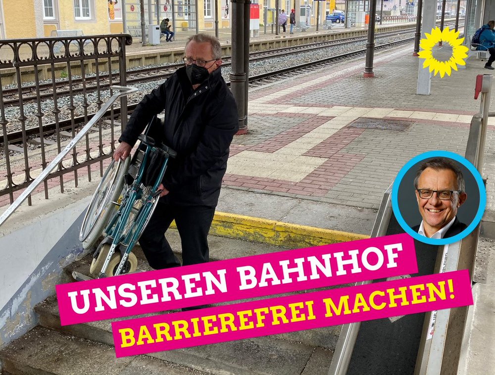 Thomas Gehring macht deutlich: „Der Bahnhof in Immenstadt ist für mich ein Negativbeispiel für Barrierefreiheit. Wer hier den Bahnsteig wechseln muss, kann das nur durch die Unterführung und mit vielen Treppenstufen schaffen.“ Das könne für Rollstuhlfahrer ein unüberwindliches Hindernis darstellen. „Ob mit Rollstuhl, Rollator, Fahrrad, Koffer, Kinderwagen oder schwerem Gepäck unterwegs. Die Bahn ist für alle da und sollte für alle selbstverständlich stets barrierefrei nutzbar sein. Leider ist das auch im Jahr 2021 noch nicht immer so“, erklärt der grüne Abgeordnete Thomas Gehring. Von knapp 1.100 Bahnhöfen und Haltepunkten in Bayern sind noch nicht einmal 500 als komplett barrierefrei eingestuft. „Das gilt auch für den Bahnhof Immenstadt. Dabei sollten alle Lebensbereiche für Menschen mit und ohne Behinderung ohne Probleme erreichbar, zugänglich und nutzbar sein.“