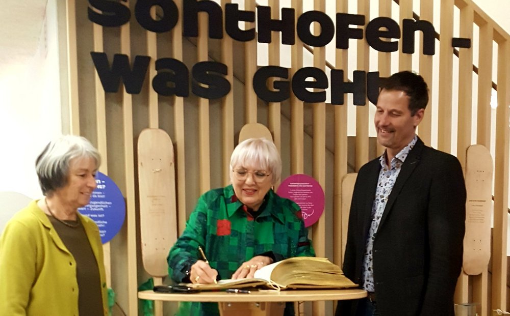 Claudia Roth, Staatsministerin und Beauftragte der Bundesregierung für Kultur und Medien, hat das Sonthofer AlpenStadtMuseum besucht. Nachdem sie sich in das Goldene Buch der Stadt eingetragen hatte, wurde sie durch Museumsleiterin Mechthild Fischer durch die Ausstellung geführt. Besonderes Interesse zeigte Roth für die aktuelle Sonderausstellung „Sonthofen - was geht?“, in der die Wünsche und Ideen der Jugendlichen für die Zukunft der Stadt im Mittelpunkt stehen. In ihrem Rundgang durch das Museum lobte die Staatsministerin das Konzept und die Umsetzung des vor zwei Jahren neu eröffneten AlpenStadtMuseums, welches ein auf die verschiedensten Besuchergruppen abgestimmtes modernes Vermittlungsprogramm bereithält.