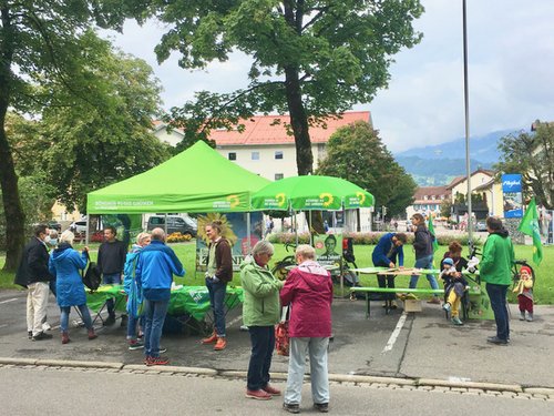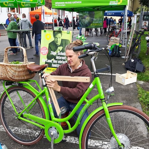Pius Bandte, unser junger, dynamischer und äußerst sympathischer Bundestagskandidat im Wahlkreis ist schon fast ein gefühlter Sonthofer. Am vergangenen Samstag ist er bereits zum vierten Mal in diesem Wahlkampf bei einer offiziellen Veranstaltung des Ortsverbands aufgetreten und hat sich beim Politischen Wochenmarkt den Fragen der Wähler*innen gestellt. In der Mitte des Marktes platziert, war unser Stand ein echter Anziehungspunkt. Auch viele Mitglieder und Sympathisanten der Grünen haben den Stand besucht und ihn zu einem echten Treffpunkt gemacht. Zusätzlich wurde dort auch gewerkelt und so manches Fahrrad wurde mit einem auffälligen Werbeschild für Pius bestückt. Vielen Dank an alle, die dabei waren und geholfen haben, uns so erfolgreich zu präsentieren.
