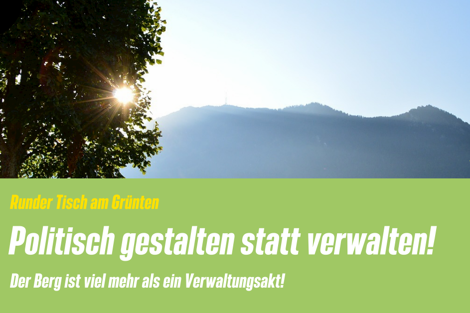 Der Runde Tisch zum Grünten in seiner ursprünglich geplanten Form wurde gewählt, um die Kreistagsfraktionen zu informieren und auch mitdiskutieren zu lassen. Stand heute wurde kein Kreispolitiker mehr zum zweiten Anlauf des Runden Tisches eingeladen, weil die Landrätin keine Relevanz sieht, politisch den Grünten zu diskutieren. Sie macht aus dem Politikum „Grünten“, das so viele Menschen in der Region bewegt, ein rein rechtliches Verwaltungsverfahren. „Die Kreisräte sind die demokratisch gewählten Vertreter der Oberallgäuer Bürgerschaft, hier werden die Wähler nicht gehört. Eine Willensbildung findet nicht statt,“ so der Landtagsvizepräsident Thomas Gehring. Es sei wichtig für die Akzeptanz des Tourismus, dass die Bevölkerung mitgenommen wird, betont Kreisrätin Antje Piekenbrock. „Wir verpassen gerade die Chance, politisch nicht nur den Tourismus am Grünten, sondern auch den des gesamten Oberallgäus zu gestalten und prägen.“, prangert die Fraktionsvorsitzende Christina Mader der Kreistagsgrünen an. Ein Leitbild, das echte Nachhaltigkeit und nicht scheinbar ökologische Projekte fördert, bedarf es für die Region. Neue Straßen, Parkplätze, Parkhaus sowie neue Bergstationen, die dabei im ausgewiesenen Landschaftsschutzgebiet liegen, zählen nach Ansicht von Mader nicht dazu. „Der Landkreis Oberallgäu ist als Verordnungsgeber Hüter des Landschaftsschutzgebietes und alles im Rahmen des Seilbahnrechtlichen Verfahrens mit Hilfe einer Ausnahmegenehmigung des Landratsamtes zu übergehen, ist rechtlich fragwürdig.“, unterstreicht Kreisrat Thomas Frey die Wichtigkeit der Schutzzone.