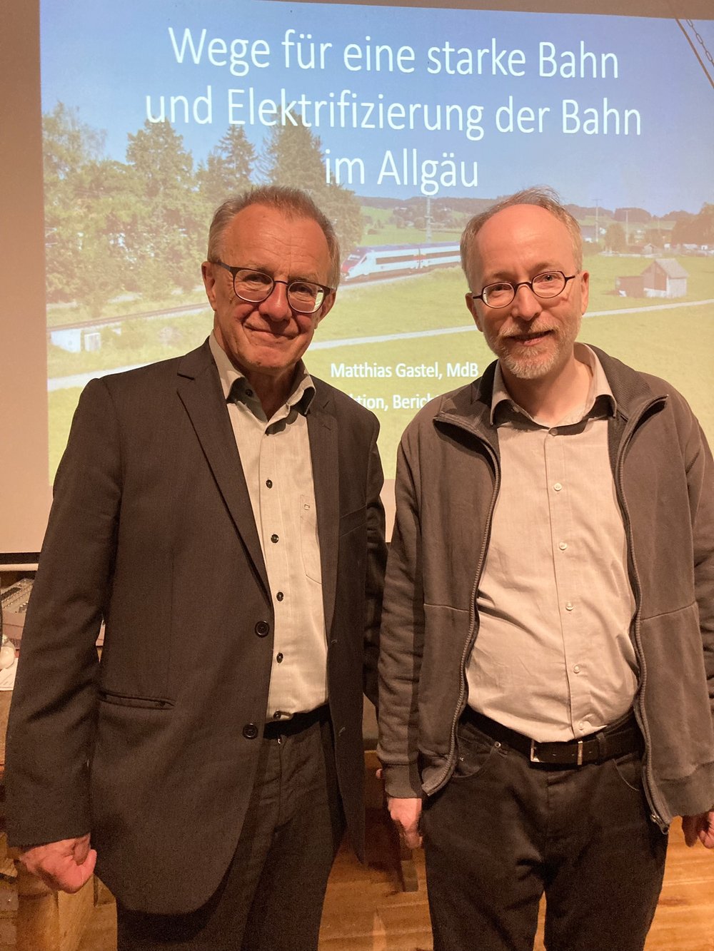 „Die Elektrifizierung von Bahnstrecken ist die Voraussetzung für guten Bahnverkehr in Deutschland. Sie bedeutet weniger Lärm, keine Abgase und bessere Beschleunigung,“ erklärte MdB Matthias Gastel, Mitglied des Verkehrsausschusses und Berichterstatter für Bahnthemen der Bundestagsfraktion Bündnis 90/Die Grünen. „Die Elektrifizierung im Allgäu ist Voraussetzung für alle Verbesserungen der Bahn, ob schnellere Fahrzeiten, zusätzliche Halte oder mehr Anbindung an den Fernverkehr, der für den Tourismus im Allgäu immens wichtig ist,“ betont der Allgäuer Landtagsabgeordnete und Landtagsvizepräsident Thomas Gehring. Deshalb müsse es auch Top Thema für die Bayerische Staatsregierung werden. „Bayern muss die Elektrifizierung der Bahn, in einem ersten Schritt Ulm-Kempten und nach Oberstdorf massiv vorantreiben“, forderte Gehring.