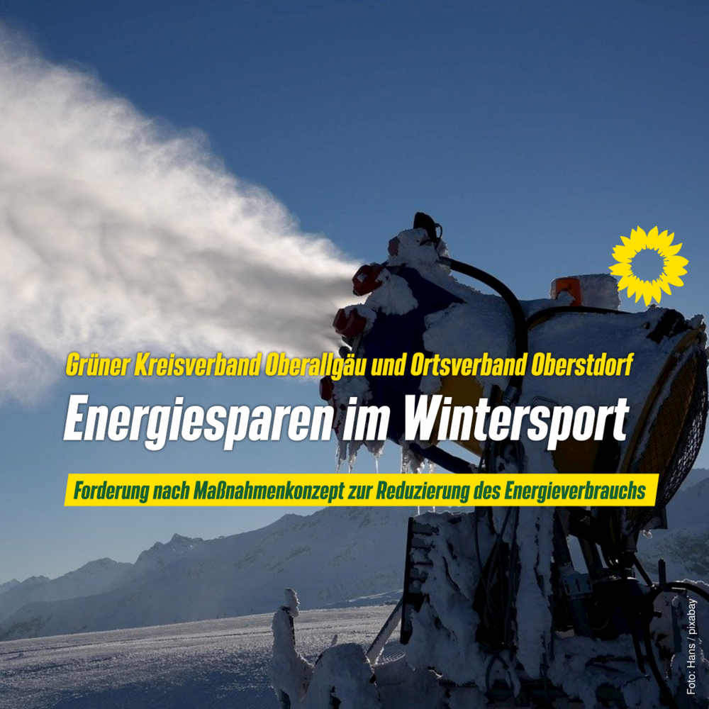 Hinzu kommt für die Ortsprecherin der Oberstdorfer Grünen Bergith Hornbacher- Burgstaller, dass der - von den Grünen seit vielen Jahren kritisierte Energieverbrauch von Schneekanonen - grundsätzlich das Klima belaste und durch den Klimawandel diese zukünftig keine Garantie für unbeschwertes Skifahren sind. Hier seien die Tourismusgemeinden in der Pflicht, nachhaltige Konzepte beim Wintertourismus zu entwickeln und neue Wege zu gehen. Weitere Maßnahmen zum Energiesparen wären für die Grünen zum Beispiel bei den Liften die Sitzheizungen auszuschalten sowie geplante Flutlichtveranstaltungen bei Tageslicht durchzuführen.