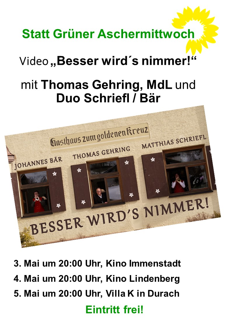 Aus den Dreharbeiten für das ursprüngliche Aschermittwochsvideo entstand ein modifiziertes Video mit dem Titel „Besser wird’s nimmer“, das wir nun zeigen wollen.