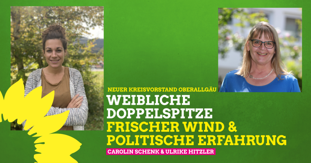 Die Oberallgäuer Grünen bleiben sich treu. Einvernehmlich erfolgte ein Wechsel an der Vorstandsspitze: Carolin Schenk aus Sonthofen und Ulrike Hitzler aus Waltenhofen bilden nun die weibliche Doppelspitze des Kreisverbandes mit „frischem Wind und politischer Erfahrung“, wie Hitzler es ausdrückte. Mit Kassiererin Ruth Meuchelböck und Kreissprecher Ulli Leiner scheiden gleich zwei wichtige Grüne aus dem Kreisvorstand aus. Beide wurden gebührend mit digitalem Applaus und passenden Präsenten verabschiedet.