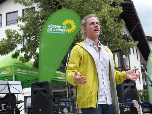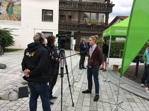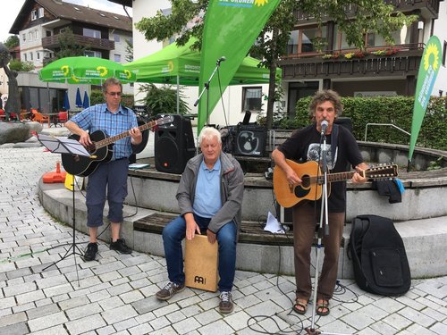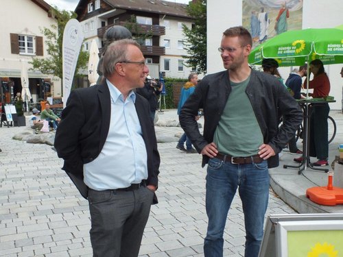 Am Mittwoch, den 28. Juli machte er in Sonthofen Station. Auf dem Spitalpatz stellte er vor ca. 70 Besuchern zusammen mit dem neuen Landesvorsitzenden Thomas von Sarnowski die Ziele der Grünen für die Bundestagswahl vor. Gemeinsam betonten sie die Kompetenz ihrer Partei in Sachen Nachhaltigkeit und Klimaschutz. „Wir stehen vor großen Umbrüchen und wir müssen klimaneutral werden“, so von Sarnowski. Sei es bei der Energiewende oder beim Ausbau des ÖPNV.