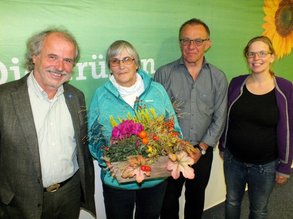 "Du kennst die Grünen in- und auswendig. Dein Erfahrungsschatz ist nur schwer zu ersetzen", lobte der Kreissprecher und Landtagsabgeordnete Ulli Leiner ihre wichtige Stellung bei Bezirks- und Landesversammlungen. Im Finanzausschuss habe sie sich um die Finanzen der Bayerischen Grünen verdient gemacht. "Dein Engagement tut dem Kreisverband noch heute gut", lobte er die "hervorragende Zusammenarbeit". "Der Ehrenvorsitz gilt auf Lebenszeit, den wirst du nicht mehr los". Die Fraktionsvorsitzende im Kreistag Ulrike Hitzler bestätigte ihr "Zuverlässigkeit, absolute Kompetenz im sozialen Bereich und die Fähigkeit Verantwortung zu übernehmen und auch mal Konflikte zu schlichten". Bereits im Bosnienkonflikt habe sie sich schon für Flüchtlinge eingesetzt.