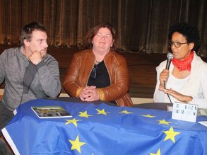 Asumang bekam viel Beifall für ihren mutigen Film mit seinen erschreckenden und gleichzeitig entlarvenden Bilder und Aussagen. Nach der Vorführung diskutierten die Regisseurin selbst, die ehemaligen Grünen-Abgeordnete im Bayerischen Landtag Christl Kamm und der Journalist Sebastian Lipp von "Allgäu rechtsaußen" mit dem Publikum. Dabei wurde deutlich, wie rechtes Gedankengut wieder hoffähig geworden ist, Alltagsrassismus in vielen Formen auftritt und die sozialen Medien dazu beitragen, dass sich rechte Hetze weiter ausbreitet. "Die Rechten wollen die Gesellschaft aus dem Gleichgewicht bringen", so Asumang. "Man müsse aufklären und zusammenhalten, wenn wir sehen wie das Gift in die Gesellschaft sickert. Die rechte Szene sei mit internationalen Verbindungen im Allgäu "gut aufgestellt, berichtete Lipp. Er warf der Regierung vor, nicht konsequent genug gegen Rassismus vorzugehen. Angesichts der zahlreicher Straftaten sieht auch Kamm die Politik in der Verantwortung, gegen rassistische und fremdenfeindliche Aktionen vorzugehen und vor allem die Opfer besser zu schützen. "Meine Waffe war das Kommunizieren" so Asumang. Die Antworten seien dann wie Puzzleteile gewesen. Das habe ihr Mut gemacht, als Einzelne durchaus etwas bewegen zu können. Für die Kreissprecherin der Grünen Christina Mader gilt es weiter "klare Kante" gegen jede Art von Rassenhass, Rechtspopulismus und Diskriminierung zu zeigen. Dabei müsse man auch die Szene im Allgäu genau im Auge behalten. Sie rief dazu auf bei der Europawahl Parteien zu stärken, die für ein weltoffenes und buntes Europa stehen.