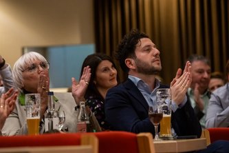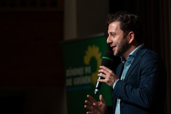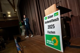 Mit viel Humor interpretierte der erst im Herbst neu gewählte Parteivorsitzende Felix Banaszak seine Aschermittwochsrolle. „Die Opposition ist ein wichtiges Element der Demokratie“, stimmte er auf die neue Rolle der Grünen im Bund ein. Klare Worte fand er für den designierten Kanzler: „Entweder hat Friedrich Merz keine Ahnung oder keinen Anstand oder beides. Nichts davon qualifiziert ihn zum Bundeskanzler“, kritisierte er scharf die Kehrtwende von CDU und CSU in der Finanzpolitik. Merz sei in der finanzpolitischen Realität angekommen. Er warf der Union vor, "das Land in den letzten Jahren systematisch belogen zu haben." Aus der Großen Koalition sei eine „kleine Koalition“ geworden – „klein an Anspruch und Ideen“.