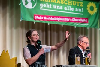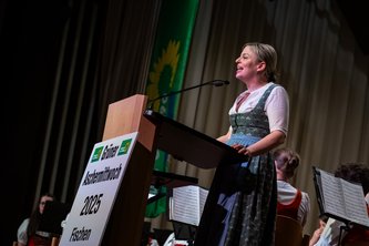Auf der Bühne der Fiskina stand mit der Fraktionsvorsitzenden im Bayerischen Landtag Katharina Schulze, der Staatsministerin Claudia Roth und dem Bundesvorsitzenden Felix Banaszak hochkarätige politische Prominenz. In fulminanten und emotionalen Reden ließen sie die aktuelle Politik Revue passieren. Die lokalen Ereignisse beleuchteten die Fraktionsvorsitzende im Kreistag Christina Mader und der ehemalige Landtagsvizepräsident Thomas Gehring. Neben dem traditionellen Derblecken der politischen Konkurrenz gab es – angesichts der politischen Weltlage und dem Erstarken der Rechtsextremen – auch viele nachdenkliche Töne.