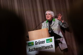 Auch Claudia Roth ging auf die Weltlage ein. „Was sind das für Zeiten – geprägt von Krisen und Konflikten?“ Sie sorge sich um die demokratischen Strukturen in Deutschland, Europa und weltweit. Der Union warf sie vor, „nach der Wahl das Gegenteil von dem zu beschließen, was sie vorher versprochen hat“. Besonders bitter: „Das Thema Klimaschutz kommt in den Sondierungsgesprächen überhaupt nicht vor“, so Roth, und weiter: „Es geht um die Einhaltung der Klimaziele und nicht um die Bekämpfung von Windrädern.“