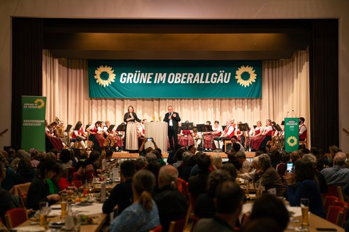 Beim Politischen Aschermittwoch der Oberallgäuer Grünen wurde auch 2026 wieder Klartext gesprochen. Die Spitzenpolitiker Felix Banaszak und Johannes Becher übten scharfe Kritik an der Bundes- und Landesregierung. Kurioses und Unerhörtes aus der Regionalpolitik benannten Christina Mader und Thomas Gehring. Vor Gästen aus ganz Schwaben kritisierten die Reden der vier Versäumnisse bei der Bahninfrastruktur, den Einfluss der Gas-Lobby und die Verwerfungen von „König Söder" – und zeigten Alternativen auf.