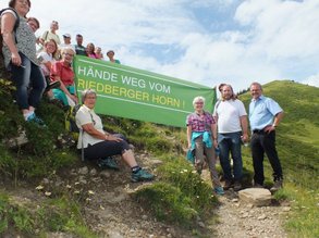 Die Grünen trugen ein Transparent mit der Aufschrift "Hände weg vom Riedberger Horn" mit, da sie oben am Grad aufspannten. Kreissprecherin Christian Mader freute sich über die zahlreichen Mitwanderer. Ihr Kommen zeige, dass viele Menschen im Oberallgäu mit der weiteren Zerstörung dieses geschützten Naturraumes nicht einverstanden sind.
