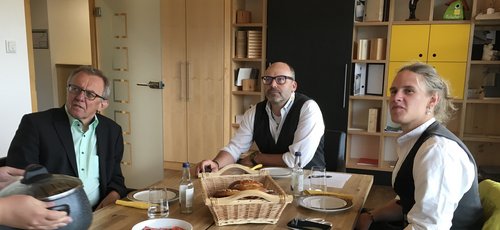Das Holzbauunternehmen Prutscher in Oy-Mittelberg im Allgäu hat sich spezialisiert auf den Bau von Holzhäusern. Die Besonderheit des Unternehmens ist vor allem die regionale Wertschöpfungskette des Materials. „Wir verwenden Holz aus der Region und bauen für und in der Region. Außerdem achten wir darauf, das Material in einen Recycling- bzw. Upcycling-Prozess einzuspeisen. Es soll nichts verloren gehen“, so der Inhaber Max Prutscher bei einem Besuch des Grünen Landtagsabgeordneten Thomas Gehring. Zusammen mit dem Grünen Bundestagskandidat Pius Bandte, selbst gelernter Zimmerer, besuchte der Allgäuer Abgeordnete das Holzbauunternehmen in Oy-Mittelberg, um sich über die derzeit schwierige Marktlage im Hausbau zu informieren. Max Prutscher betonte, dass er seit der Gründung seines Unternehmens bisher noch nie auf Fördergelder zurückgreifen musste. Sein Wunsch an die Politik war jedoch, dass in Bayern eine ähnliche Überzeugung zum Baustoff Holz entsteht, wie im Nachbarland Schweiz. „Dort wird jeweils zuerst geprüft, ob ein Haus in Holz gebaut werden kann und nur wenn es zwingende Gründe dafür gibt, dass dies nicht möglich ist, darf davon abgewichen werden.“ Auch Thomas Gehring ist überzeugt, dass der Holzhausbau deutlich besser unterstützt werden muss. „Baden-Württemberg macht es uns vor und fördert mit 30 Prozent diese ökologische und nachhaltige Bauweise.“ Dazu gehöre auch, die Regionalität zu fördern. „Mit einem Punktekatalog bei der Vergabe von Bauprojekten könnten die Verwendung des Baustoffes Holz und die regionale Wertschöpfungskette eine hohe Priorität bekommen, um die Attraktivität des Holzhausbaus noch zu steigern“, ergänzte Pius Bandte.