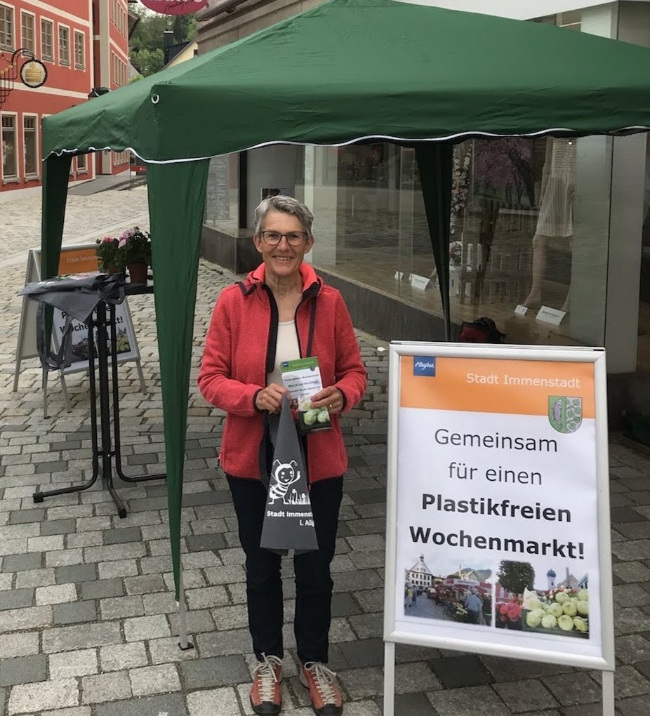 Am Samstag, dem 14. Mai, durften wir beim Infostand der Stadt Immenstadt zum Thema "Plastikfrei einkaufen" am Immenstädter Wochenmarkt mithelfen. Erfreulicherweise wird von Seiten der Händler*Innen und Kund*Innen schon zum Großteil auf Einkaufskörbe, Mehrwegtaschen und Papiertüten gesetzt. Dennoch war es uns wichtig, darauf aufmerksam zu machen, dass nur einmal verwendbare Plastiktüten beim Einkauf möglichst nicht mehr zum Einsatz kommen. Bürgermeister Sentner und unsere dritte Bürgermeisterin, Rosi Oppold, brachten am Infostand viele Infoflyer und Stofftaschen unter die Einkaufenden, was auf rege Nachfrage stieß, sodass bald alles Material verteilt war. Vielen Dank dafür!