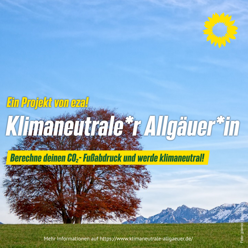 Auf www.klimaneutrale-allgaeuer.de ist ein CO₂-Rechner, mit dem jede ihren persönlichen CO2-Abdruck erhält. Dabei werden die verschiedenen Lebensbereiche abgefragt: Haushalt, Mobilität, Konsum, Urlaub etc.