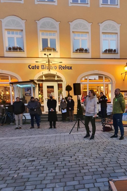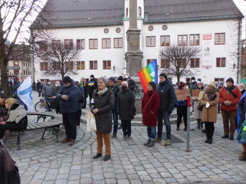 Die Anteilnahme war groß: um die 200 Immenstädterinnen und Immenstädter fanden sich auf dem Marienplatz ein. Auch die katholische Kirche, die evangelische Kirche und die muslimische Glaubensgemeinschaft haben sich unserem Aufruf angeschlossen. Herr Pfarrer Epp (katholische Kirche), Herr Pfarrer Steinbrück (evangelische Kirche) und Herr Yalcin (Kulturzentrum Immenstadt) sprachen jeweils ein Friedensgebet.