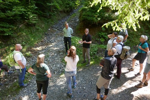 Die Nachteile der Fichte, von den Grünen nachgefragt, werden in der Klimaveränderung immer deutlicher: Als Flachwurzler kann sie Stürmen nicht gut standhalten und sie verträgt Trockenheit und Hitze schlecht. Deshalb sucht die Forstwirtschaft deutschlandweit fieberhaft nach neuen Baumarten wie z.B. Douglasie, Libanonzeder, Baumhasel oder Esskastanie. Für das obere Allgäu hoffen die Forstfachleute, dass der naturnahe und bewährte Bergmischwald mit einem deutlichen Schwergewicht auf Buchen und Tannen die Klimakrise aushalten wird. „ Wir müssen den Bergwald jetzt so gestalten, dass er die nächsten hundert Jahre vital bleibt, schützt und auch den wertvollen Rohstoff Holz liefert“, so Sauter.