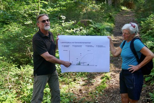 Um dieses wertvolle Ökosystem mit hoher Artenvielfalt zu erhalten sind für die meist privaten Waldbesitzer kostenlose Beratung und auch Zuschüsse absolut erforderlich, berichtete Sauter aus seiner langjährigen Berufserfahrung als Forstamtsleiter. Bandte pflichtete dem bei und stellte klar: „Möglichst keine großflächigen Kahlschläge, Totholz für die Artenvielfalt und Mischwald sind erforderlich!“ Zudem könne der Waldumbau nur gelingen, wenn der Wildbestand zur Fläche passt, also eine Balance zwischen Wald und Wild existiere, waren sich Förster Sauter und die Grünen einig.