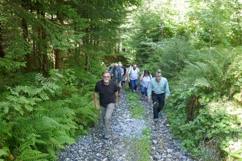 „Mischwald mit klimaresilienten Baumarten ist in Zeiten des Klimawandels die einzige Chance, dieses so wichtige Ökosystem stark zu machen gegen Trockenheit, Hitze und Stürme“, lautete eine zentrale Aussage des Försters Dr. Ulrich Sauter. Bei einem Rundgang durch den Großen Wald bei Wertach mit Oberallgäuer Grünen und Pius Bandte, grüner Direktkandidat, verdeutlichte Sauter dies anhand vieler Besonderheiten.