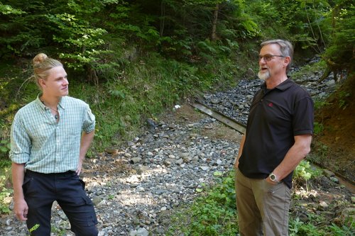 Dabei verwiese er unter anderem auf die Vorzüge der Fichte: Sie ist wenig durch Verbissschäden gefährdet und liefert vorzügliches Bauholz, was der gelernte Zimmerer Bandte bestätigte. „Bauen mit Holz ist doppelt nachhaltig: Ein nachwachsender Baustoff, der auch noch als CO2-Speicher das Klima schützt!“, so der 23-Jährige.