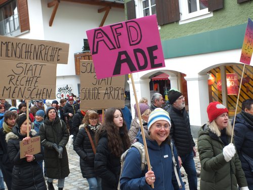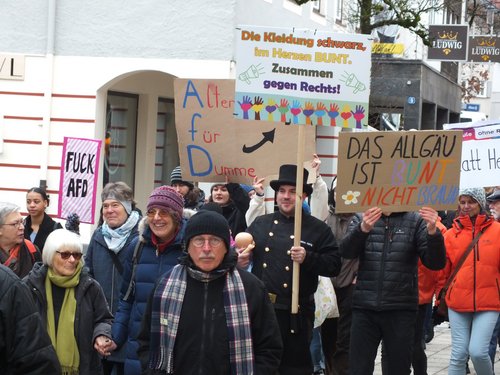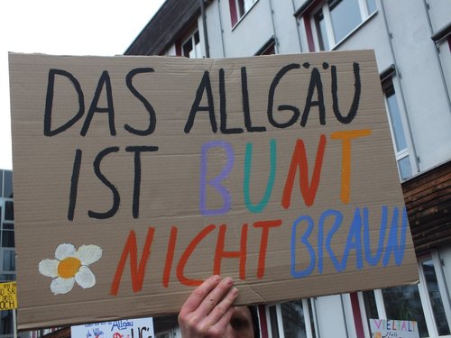 Unter diesem Moto zogen am Samstag, den 27. Januar über 2000 Menschen durch die Sonthofener Innenstadt um gegen Rechts zu demonstrieren. Veranstalter waren der Integrationsbeirat. Mit zahlreichen Plakaten zeigten Alt und Jung Flagge für Demokratie, Menschenrechte, Vielfalt und Toleranz. Gegen Hass und Hetze.