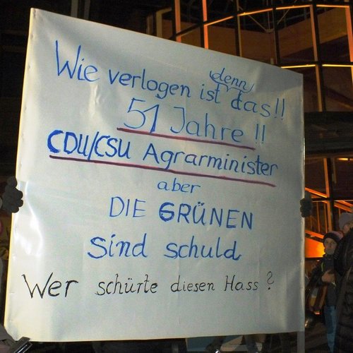 Für die Oberallgäuer Grünen ist mit den Aschermittwochprotesten – siehe die Absage in Biberach wegen einer gewalttätigen Stimmung - und weiteren Angriffen auf Grünen-Politiker*innen klar eine Grenze überschritten. Auch in Fischen kam es zu grenzwertigen und übergriffigen Situationen. Die Grünen haben Verständnis für die Anliegen der Bauern und ihre Existenzängste. Verstehen aber nicht, dass sich der Zorn ausgerechnet gegen die Grünen richtet, die regional einkaufen und sich immer für faire Preise für die Landwirte und für regional Wirtschaftskreisläufe eingesetzt haben und weiter einsetzen. Auf Gegenplakaten war auch zu lesen, dass CDU/CSU über Jahrzehnte für die Misere der Landwirtschaft verantwortlich sind.