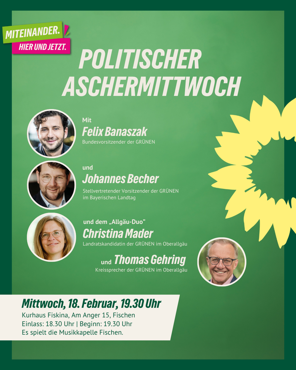 Die Grünen im Oberallgäu laden herzlich ein zu ihrer Kultveranstaltung: dem Politischen Aschermittwoch.