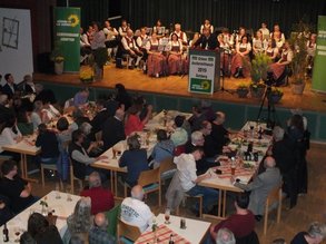 Über 450 Besucher hören gebannt zu, wie die Fraktionsvorsitzende Katharina Schulze und der Landtagsvizepräsident Thomas Gehring die Politik im Allgäu, Bayern und im Bund beurteilen!