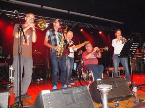 Dann war auch schon Schluss mit der Politik - die Musik übernahm das Geschehen auf der Bühne. Drei Bands - "fish´n´chicks", "the mottfire" und "joe guest" machten bei Kässpatzen und Bier den 300 bis 400 - meist jüngeren Besuchern - mächtig Dampf. Aber auch ein paar ältere Semester zeigten, dass sie das Abrocken nicht verlernt haben. Den Anfang machten "the mottfire" mit Harp-Blues-Rock, wo Hansi Burger an der Mundharmonika die Akzente setzte. "Joe guest" brachten mit harten Rhythmen die Markthalle zum Beben und das Publikum dazu wild das Tanzbein zu schwingen. Aus Mitgliedern von Schöllang bis Augsburg setzt sich die 9-köpfige Band "fish´n´chicks" zusammen. Sie boten Funk, Jazz und Soul vom Feinsten und heizten zum Schluss die Stimmung noch mal kräftig an.