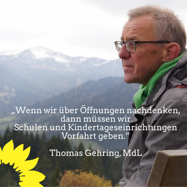 Wenn wir über Öffnungen nachdenken, dann müssen wir Schulen und Kindertageseinrichtungen Vorfahrt geben,“ so Gehring. Eine verlässliche Bildung im Präsenzunterricht sowie die Öffnung der Kitas sei für Wissenserwerb, Bildungsgerechtigkeit sowie für die psychosoziale Gesundheit von Kindern und Jugendlichen unabdingbar.