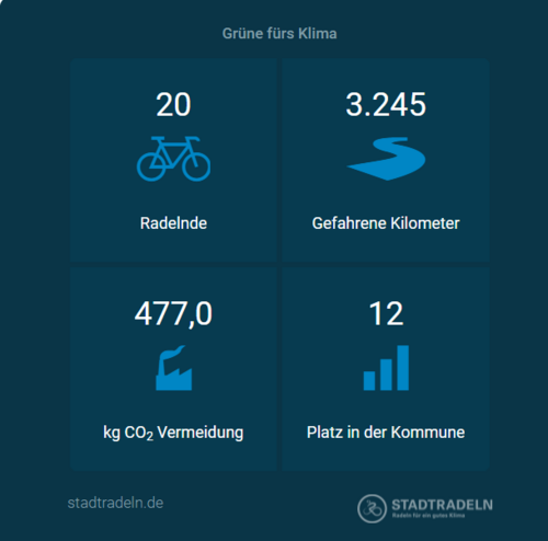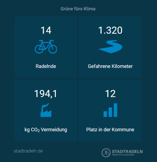 In der ersten, sonnigen Stadtradel-Woche sind 14 Radler*innen schon kräftig in die Pedale getreten und haben 1320 km für das Team GRÜNE FÜRS KLIMA erradelt.