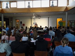 Nachdem die Jugendlichen dem Grünen Politiker zugehört hatten, konnten sie über das Vorgelesen, aber auch über aktuelle politische Themen mit Gehring sprechen. Anfängliche Schüchternheit der Zehntklässler*innen wich sehr schnell großem Interesse an seiner politischen Arbeit und auch an seiner Meinung zu verschiedenen Themen. Thomas Gehring erzählte den Schüler*innen, warum ihn ausgerechnet dieses Buch fasziniert, wie er selber zur Politik und zu den Grünen gekommen ist und welche Zukunftspläne die Partei anstrebt.