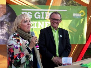 Zuvor hatte der Landtagskandidat Thomas Gehring beschrieben, was im Allgäu - bei aller Schönheit - im Argen liegt. Der Landkreis könne seine selbst gesteckten Klimaziele nicht erreichen, weil durch die CSU-Politik im Land die Energiewende praktisch zum erliegen gekommen ist. Bahntechnisch nannte er das Allgäu "Dieselgäu", da es mit der Elektrifizierung nicht voran gehe. Die Bauern müssten faire Preise und mehr Wertschätzung für eine naturnahe Landwirtschaft bekommen.