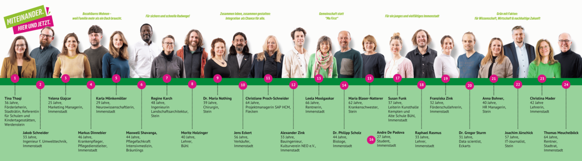 Kontinuierliche Weiterarbeit an Themen im sozialen wie im Bereich des Klimaschutzes und der Klimaanpassung versprechen auch die neuen Kandidat*innen. Was vielen unter den Nägeln brennt, ist das Wohnen. Jakob Schneider und Dr. Gregor Sturm wollten nach ihrem Studium wieder ins Allgäu zurück. Das größte Hindernis war eine Wohnung zu finden. „Mit Familie ist es noch viel schwieriger als für Alleinstehende“, berichten beide von ihren Erfahrungen. Bezahlbaren Wohnraum zu schaffen für Menschen, die hier leben und arbeiten, neue Wohnungen in der Stadt zu fördern und dabei Baulücken schließen, ist ebenso ein Anliegen wie ein verbessertes Angebot zum ÖPNV, weniger Autoverkehr in der Stadt und mehr und sichere Radwege. Etliche junge Eltern aus grünen Reihen, die hier ihren Arbeitsplatz in großen oder kleinen Betrieben gefunden haben, brauchen ein gutes Angebot an Bildungsmöglichkeiten. Deshalb begrüßen sie das weitreichende Angebot von den Kindertagesstätten bis hin zu den weiterführenden Schulen. Dass es mittlerweile eine verlässliche Betreuung der Grundschulkinder mit dem Hort gibt, wird dankbar angenommen. Der Ausbau der Ganztagesbetreuung in den Grundschulen ist ein weiterer wichtiger Schritt.