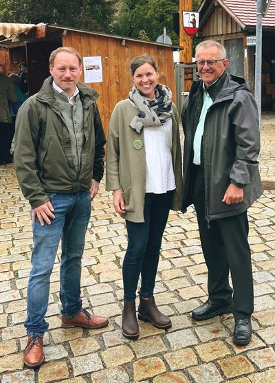 Bild oben: Der Bürgermeister unserer Marktgemeinde, Florian Schmid, mit der GRÜNEN-Ortssprecherin Marion Wenzel und Thomas Gehring, dem Vizepräsidenten des Bayerischen Landtags.